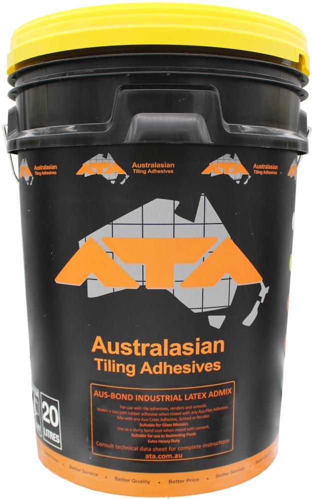Aus-Bond Industrial Latex AdmixSpecially formulated latex admix for use in sand/cement based mortars for extreme conditions such as swimming pools, facades of buildings, rapid transit stations and areas subject to extra heavy duty traffic. It reduces the porosity of sand/cement mortars, increases the compression strength, bond strength and flexibility to withstand shock and vibration. It will not deteriorate or break down in permanent wet areas. Available in white 5 and 20 Litres UsesSuitable as an admix to: