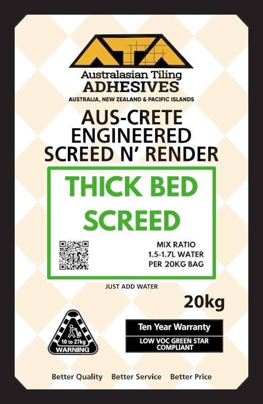 Aus-Crete Thick Bed ScreedFactory prepared sand and cement screed Mortar Available in grey 20kg Uses